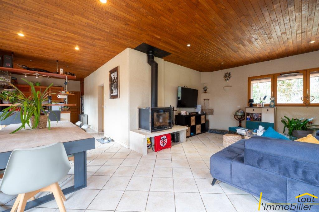 La Maison. RDC. Entrée sur séjour de 47 m² incluant espace cuisine avec poêle bois, espace de rangement ou bureau/chambre de 12,3 m², couloir de de desserte avec rangement de 8 m², grande chambre de 18 m², dressing et espace bureau de 10,6 m²,