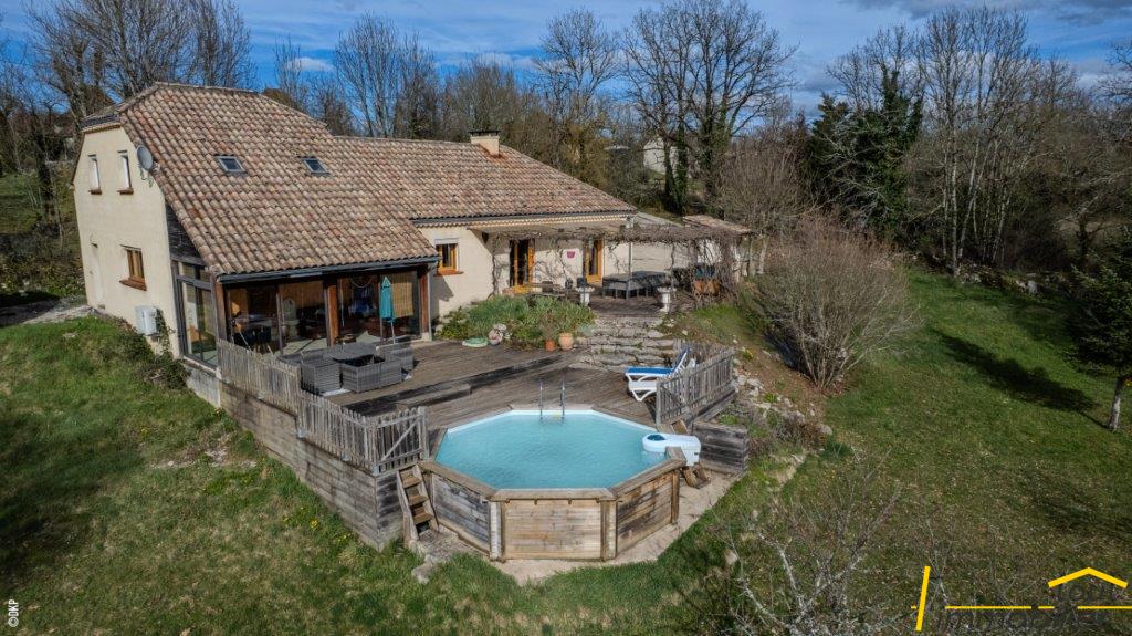 Secteur LABASTIDE - Au sein du Parc naturel des Causses, bel environnement serein et paisible sur 2500 m² avec piscine hors sol pour cette jolie Maison Contemporaine - 143 m² habitables dont spacieux séjour et 4 chambres. Agréables terrasses ombragées, four à pains, serre de rangement.