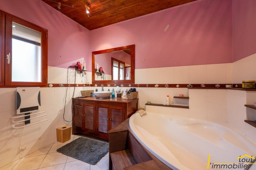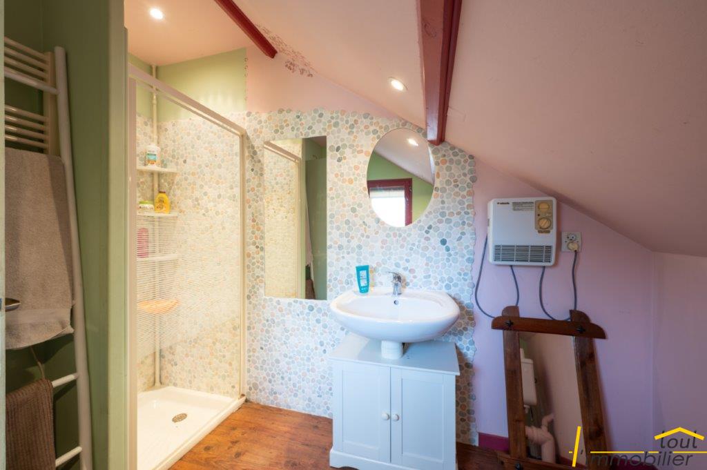 salle de bains - douche et bains - de 8,66 m², véranda non chauffée de 15,6 m², 2 wc de 1,47 m² + wc dans local technique de 3 m². Etage. Palier de 4,3 m², 2 chambres de 10 m² (surfaces nettes), pièce de 4,3 m², salle d'eau wc de 3,5 m², combles pour rangement.