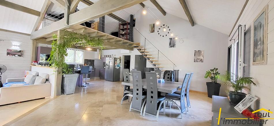 Dès l’entrée, vous serez conquis par les volumes et la luminosité. La pièce de vie, spectaculaire avec son séjour cathédrale, offre un espace chaleureux et ouvert sur l’extérieur, invitant à profiter pleinement des terrasses et du jardin. Une atmosphère moderne et conviviale s’en dégage, sublimée par des matériaux de qualité.