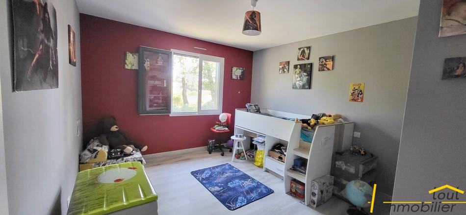 De plain-pied, la maison développe 170 m² habitables et propose un agencement idéal : trois chambres dont une avec dressing, une salle de bain (baignoire et douche), une buanderie ainsi qu’un bureau en mezzanine, parfait pour le télétravail ou un espace détente.