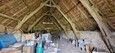 RDC: séjour (53 m²) avec cheminée et ancienne souillarde (sol en pierre et poutres apparentes), cuisine et salle d 'eau avec WC.